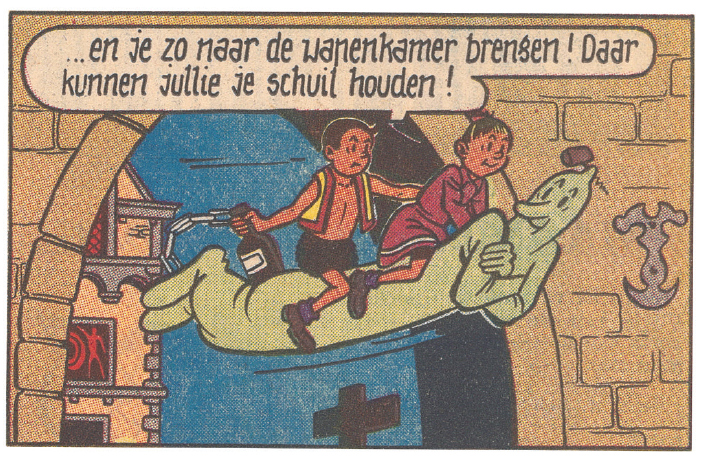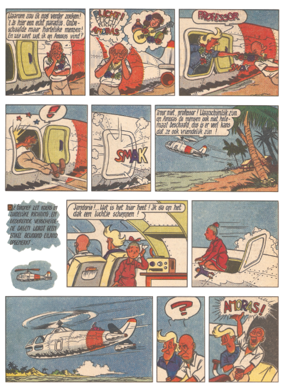 In 1966 verscheen in de Patskrant de hertekende versie van ‘Het eiland Amoras’, die een jaar later in albumvorm werd uitgebracht. Voor het album werd echter wegens plaatsgebrek een pagina weggelaten.